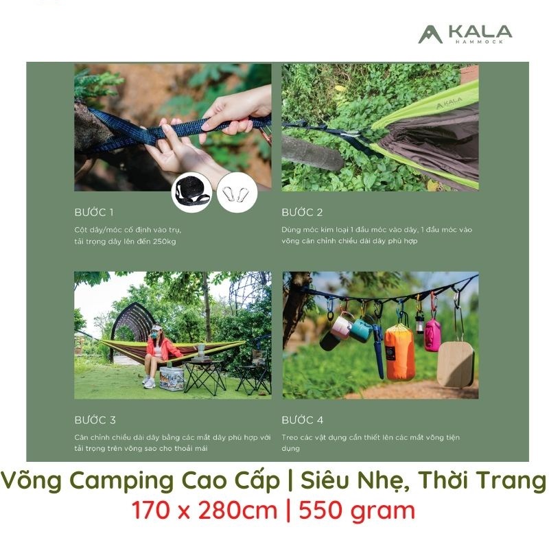 Giới thiệu Võng Camping Cao Cấp | Siêu Nhẹ | Thời Trang | 170 x 280cm | Đủ Màu | Gấp Gọn 19x11cm | Tặng Dây + 2 Móc | VT MART