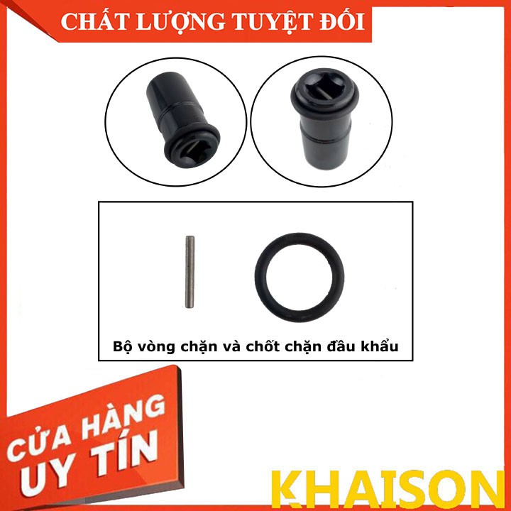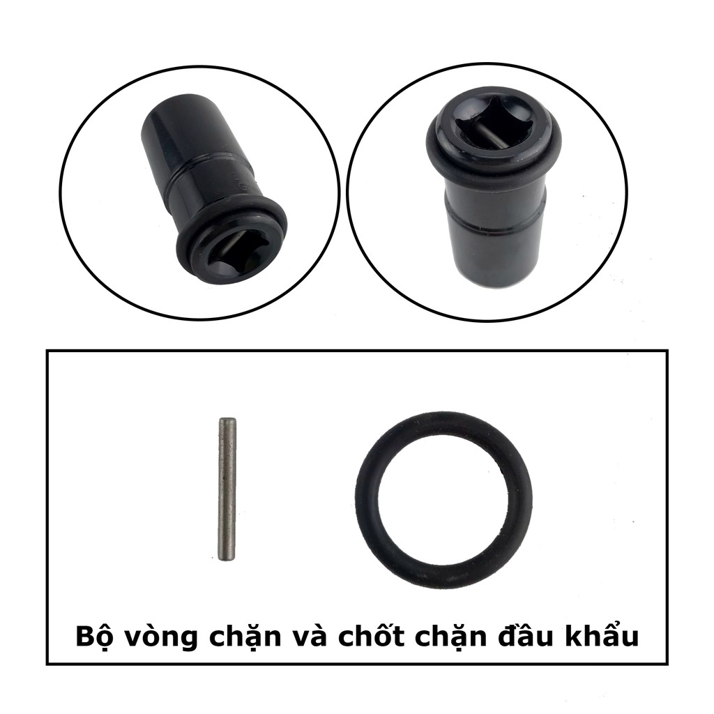 Bộ vọng chặn và chốt chặn khóa đầu khẩu cho máy siết bulong có tác dụng giữ chắc đầu khẩu, cố định đầu khẩu không xê dịch khỏi đầu máy bulong, đảm bảo hiệu quả công việc.Quy cách sản phẩm: sản phẩm có 2 phân loại theo kích thước:
