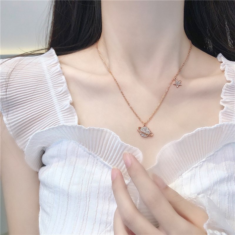 Vòng cổ ngôi sao dải ngân hà, nhìn thui là cưng xỉu rùi nè,Tone màu vàng hồng chứ không phải màu vàng thông thường, đeo trông lạ và cá tính lắm nha💙