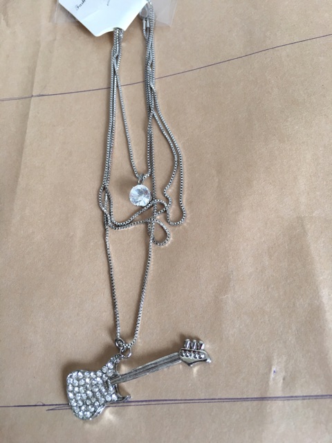 Vòng cổ phụ kiện này cho các bạn đam mê guitar, món đồ để dùng hoặc trưng bày hoặc đem tặng là vô cùng hợp lý!!Chất liệu: kim loại mạ crom ko gỉ, đính đá siêu xịn