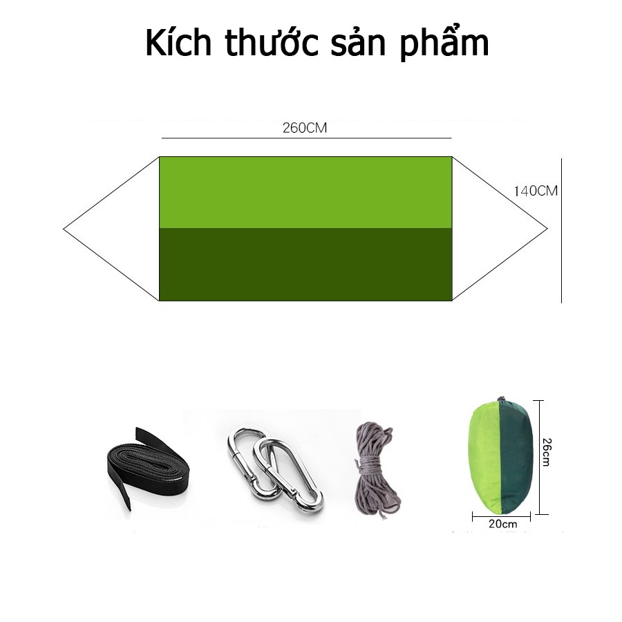 Chịu khối lượng tối da: 200kg, bạn có thể nằm, ngồi trên võng thoải mái với người thân, bạn bè của mình trong các chuyến đi dã ngoại, đi du lịch ngoài trời