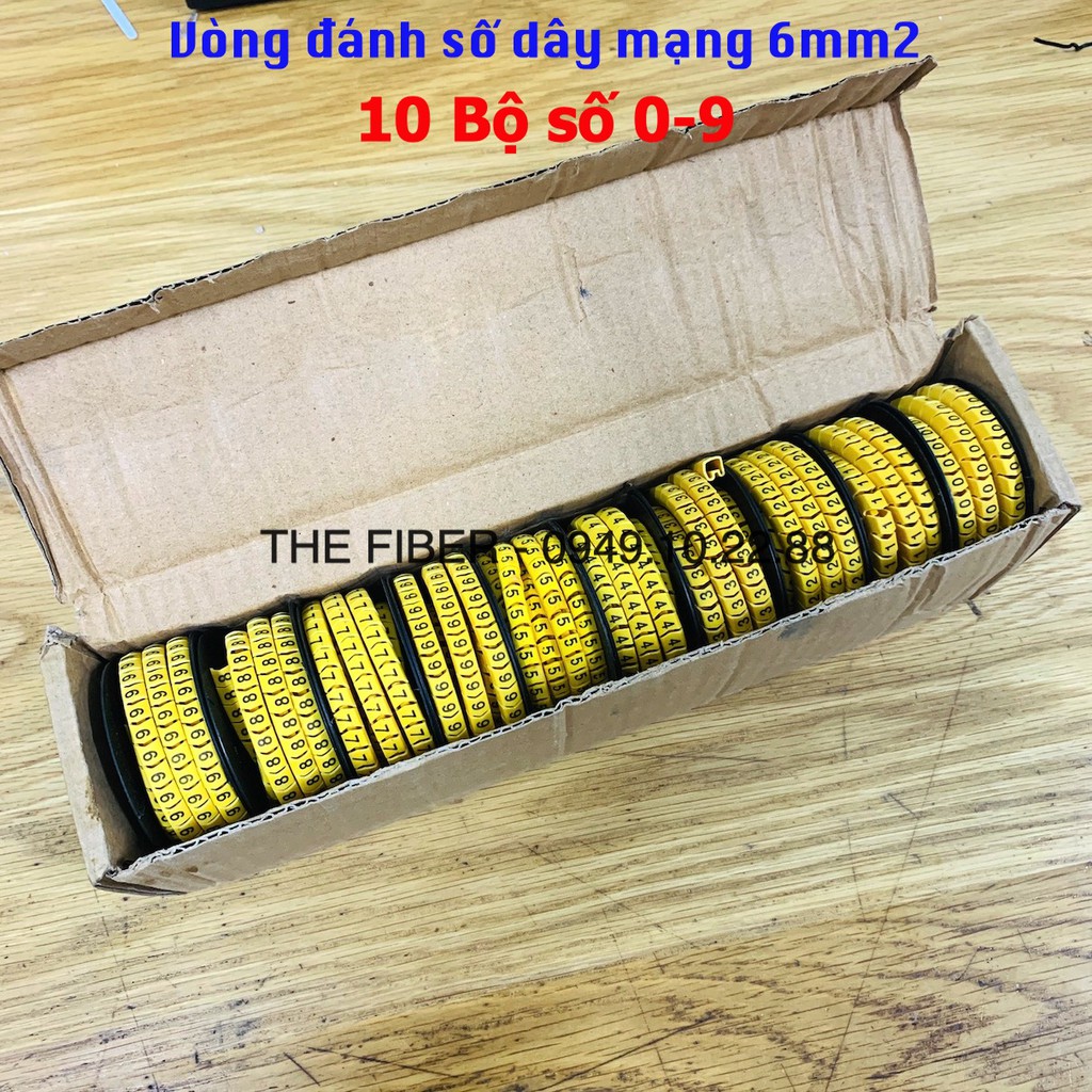Vòng Đánh Số Dây Mạng Bằng Cao Su CAT5E CAT6 6mm2- 1 hộp 10 vòng từ 0 đến 9, mỗi vòng một số và có 140 số mỗi vòng.