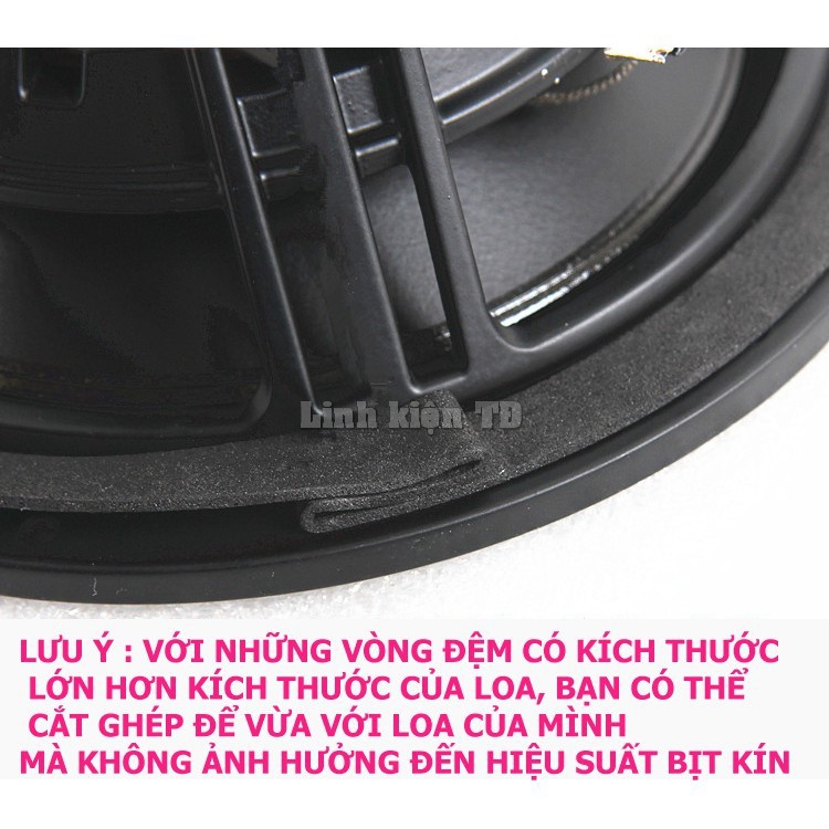 Vòng đệm có tác dụng bịt kín những kẽ hở còn lại khi bán ghép loa vào thùng, giúp âm thanh đạt chất lượng tốt nhấtVòng đệm có thể được cắt, ghép để phù hợp với loa của bạn mà không ảnh hưởng đến chất lượng