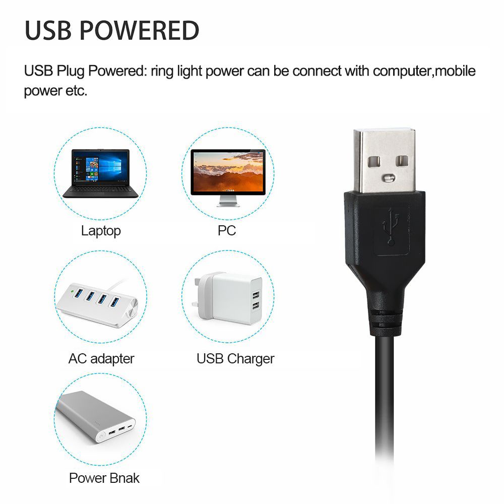 USB Plug Powered:ring light power can be connect with computer,mobile power etc.