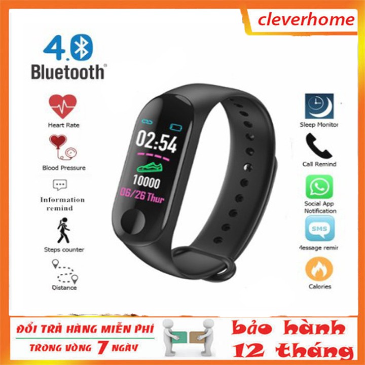 Vòng Đeo Tay đồng hồ thông minh theo dõi sức khỏe đo nhịp tim huyết áp M3 với độ chính xác cao