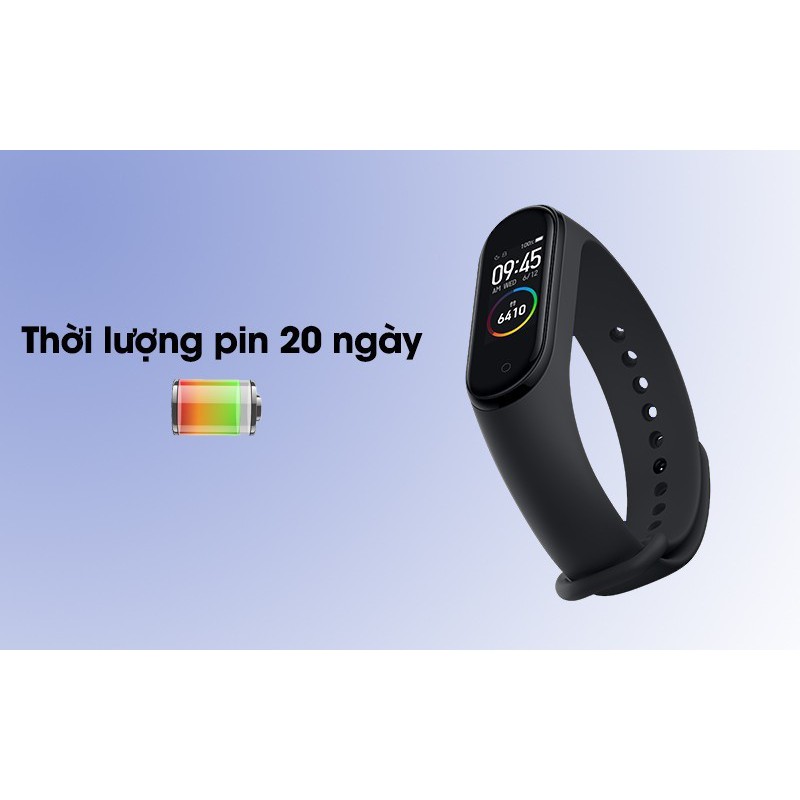 Mi Band 4 vẫn dùng cảm biến nhịp tim giống thế hệ cũ, cũng như vẫn có tính năng theo dõi, đo chất lượng giấc ngủ, hỗ trợ Bluetooth 5.0, các tính năng theo dõi sức khoẻ với 6 chế độ tập luyện cơ bản,..Về thời lượng pin, thời gian tối đa 20 ngày thời gian sử dụng thông thường 3-10 ngày.