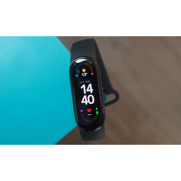 Màn hình 1.56 inch cùng độ phân giải là 152 x 486 pixels, lớn hơn khoảng 50% so với Mi Band 5 (Mi Band 5 có màn hình 1.1 inch). Mật độ điểm ảnh trên Mi Band 6 được nâng cấp lên đến 326ppi, giúp cho các chi tiết trên màn hình được hiển thị sắc nét hơn
