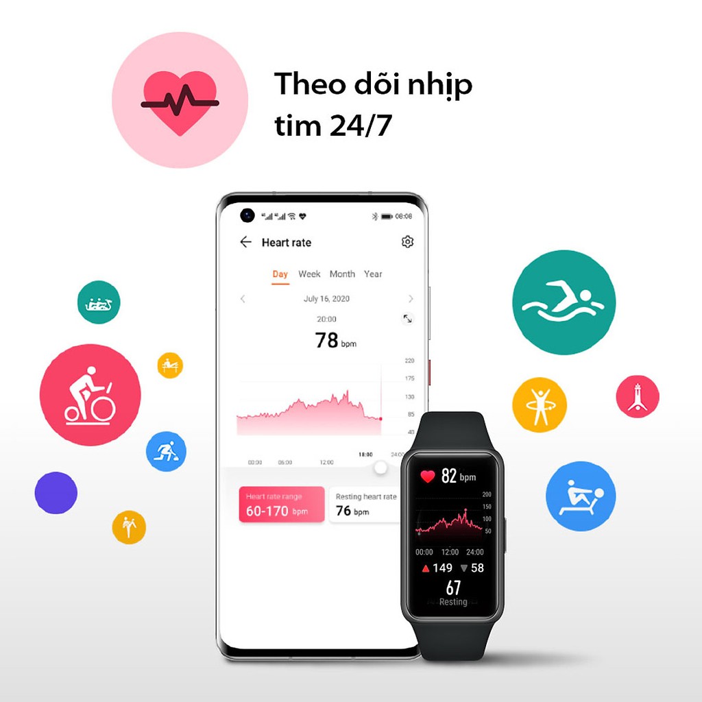 Điện Thoại & Phụ Kiện > Thiết bị đeo thông minh > Đồng hồ thông minh & Vòng đeo tay sức khỏe || Vòng Đeo Tay Thông Minh HUAWEI Band 6 - Hàng chính hãng Digiworld phân phốiCòn hàng