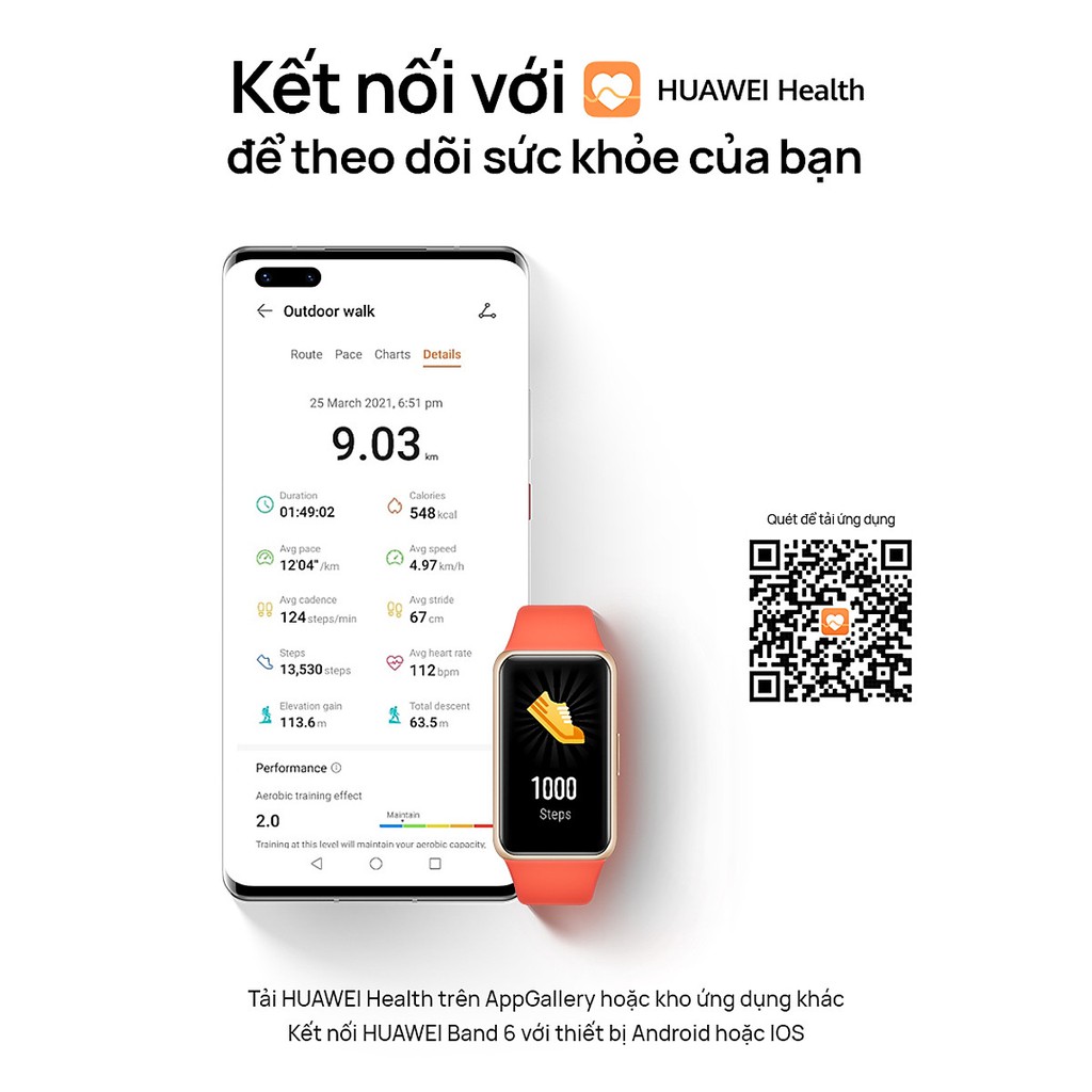 Vòng Đeo Tay Thông Minh HUAWEI Band 6 | Theo Dõi SpO2 Cả Ngày | Màn Hình Tràn Viền | Pin Liên Tục 2 Tuần | Hàng Phân Phố
