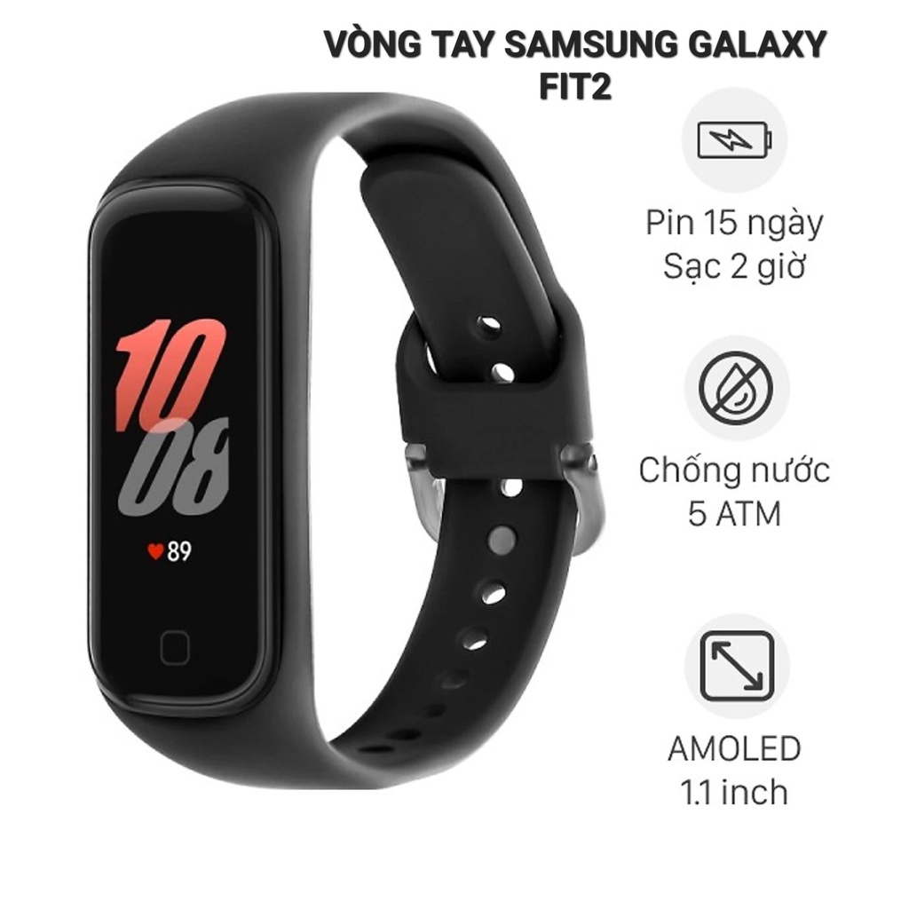 Vòng Đeo Tay Thông Minh Samsung Galaxy Fit2 (SM-R220) Theo Dõi Vận Động - Thể Thao - Giấc Ngủ - Nhịp Tim - Hàng Chính Hã