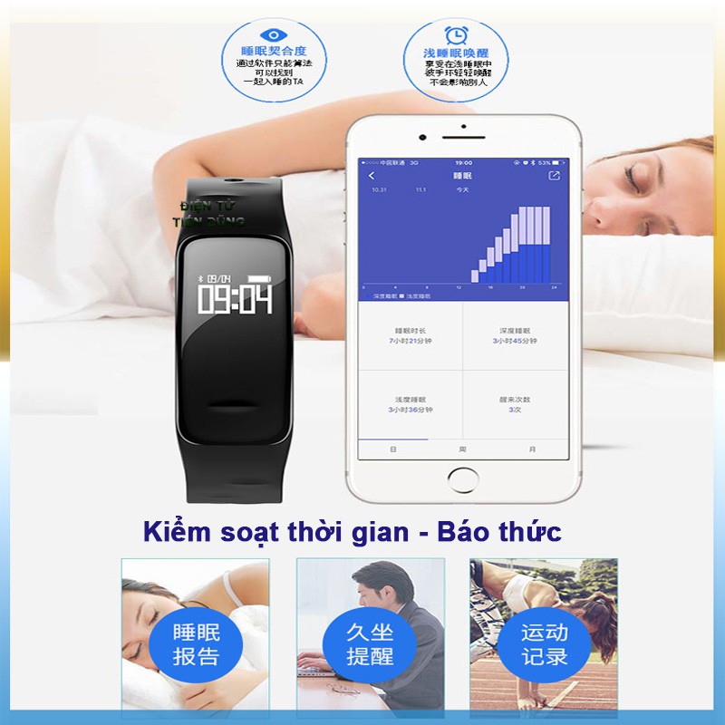 - Chức năng chính : pedometer, calo, khoảng cách, đồng hồ bấm giờ, chất lượng giấc ngủ đo lường,