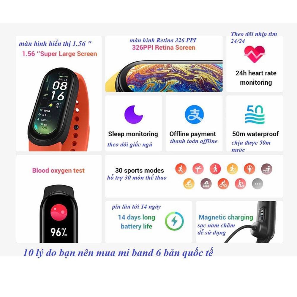 Vòng đeo tay thông minh xiaomi mi band 6 bản quốc tế bảo hành 6 tháng