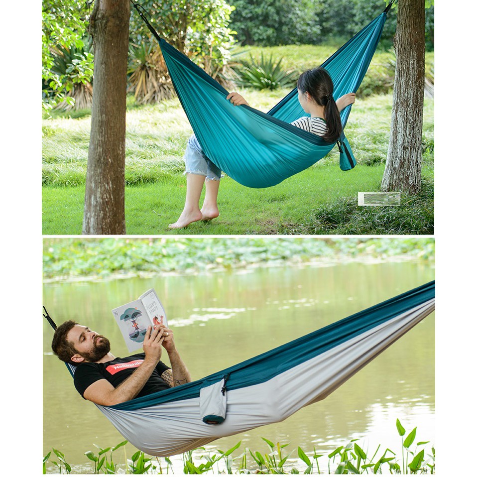 • Đặc điểm: tiện dụng, có thể gói gọn vào túi nhỏ (dính kèm theo võng) để mang theo, kích thước túi sau khi gói dài 21 cm * ngang 11 cm, dễ dàng mắc võng bằng dây và tháo ra nhanh chóng, cực kỳ chắc chắn.• Chất liệu: Vải Pongee 340T được làm bằng polyester nguyên liệu đàn hồi thấp, mềm mại và mịn màng, kết cấu nhẹ và bền, độ đàn hồi và độ bóng tốt, không co lại, dễ giặt, làm khô nhanh, cảm thấy tốt, chống thấm nước, dai, bền, chống rách, thoáng khí, thân thiện với da bạn, mát mẻ, chống nóng, giặt không phai màu.