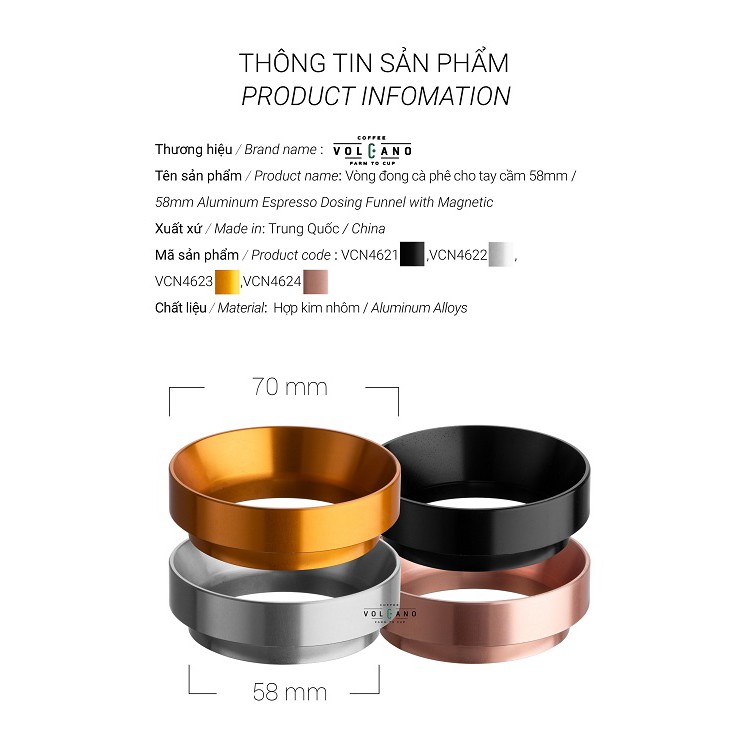 Tên sản phẩm: Vòng đong cà phê bằng nhôm 58mm- Công ty chịu trách nhiệm về hàng hóa: CÔNG TY TNHH CÀ PHÊ VOLCANO