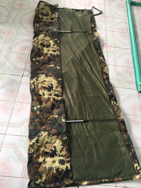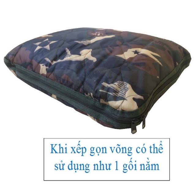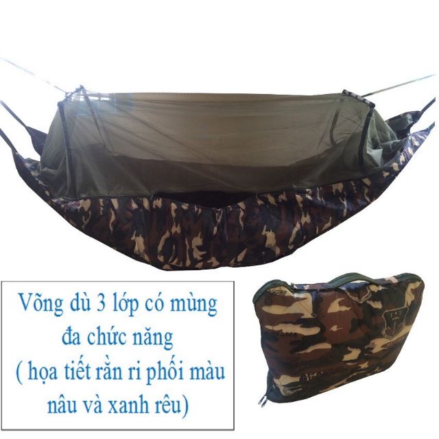 Võng có mùng màu lính rằn ri 3 lớp có túi đựng bền đẹpSản phẩm có sức chịu được trọng lượng của 2 người