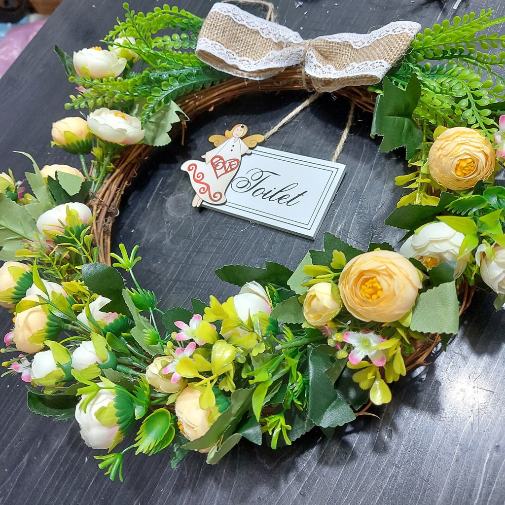 ** Vòng hoa thích hợp trang trí, tạo không gian sống tươi mới** Đường kính vòng 30cm, sau khi kết hoa đường kính cả hoa rộng tầm 35cm