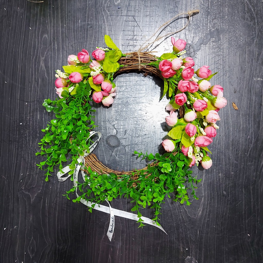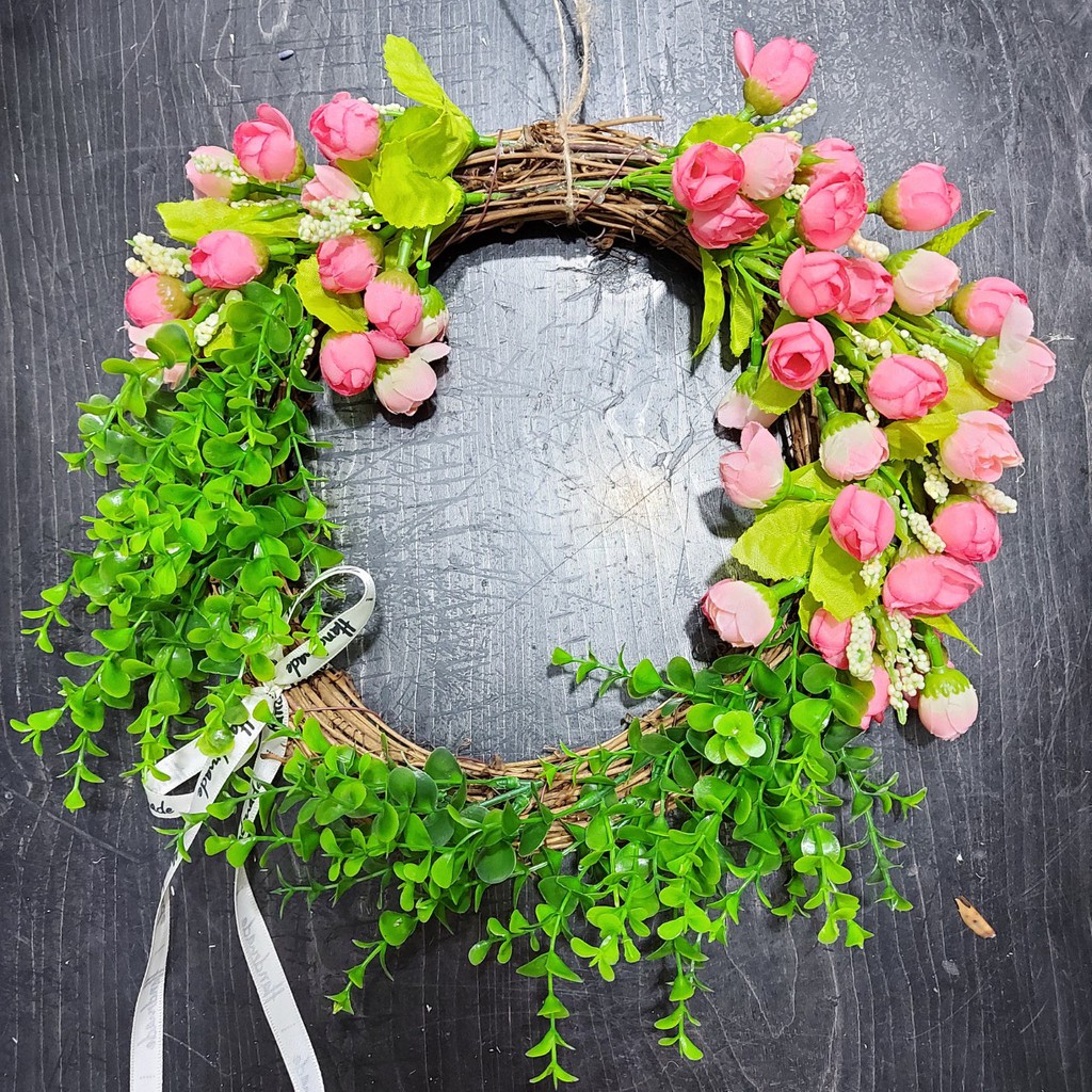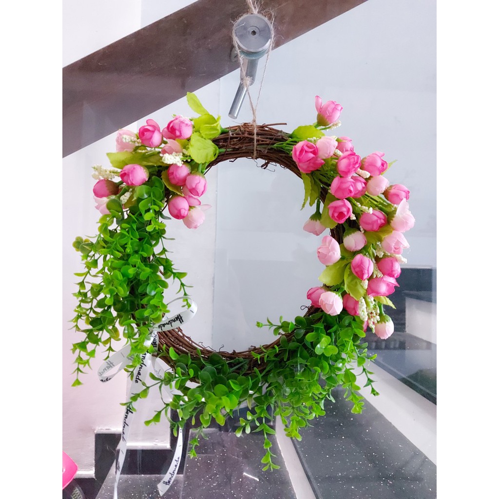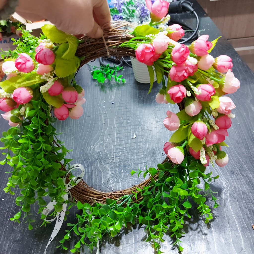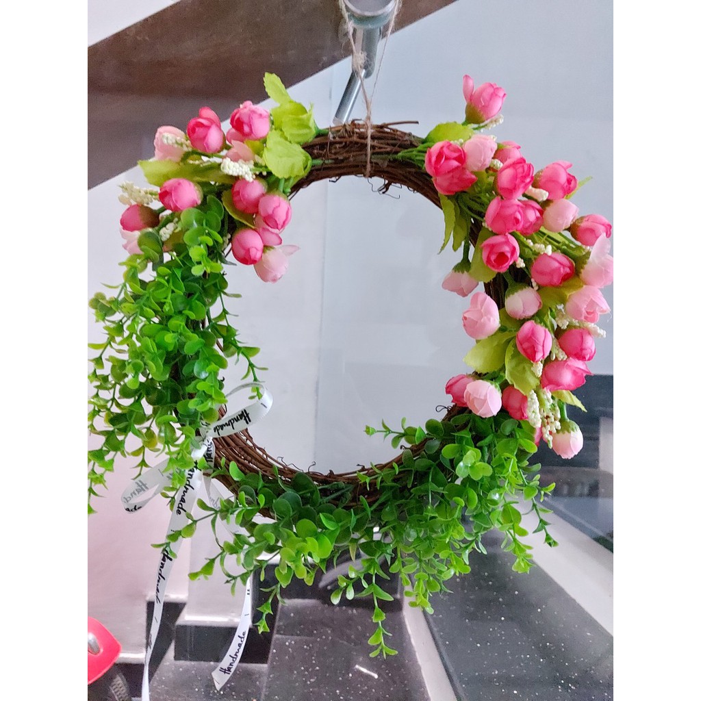 ** Vòng hoa thích hợp trang trí, tạo không gian sống tươi mới** Đường kính vòng 25cm, sau khi kết hoa đường kính cả hoa rộng tầm 30cm