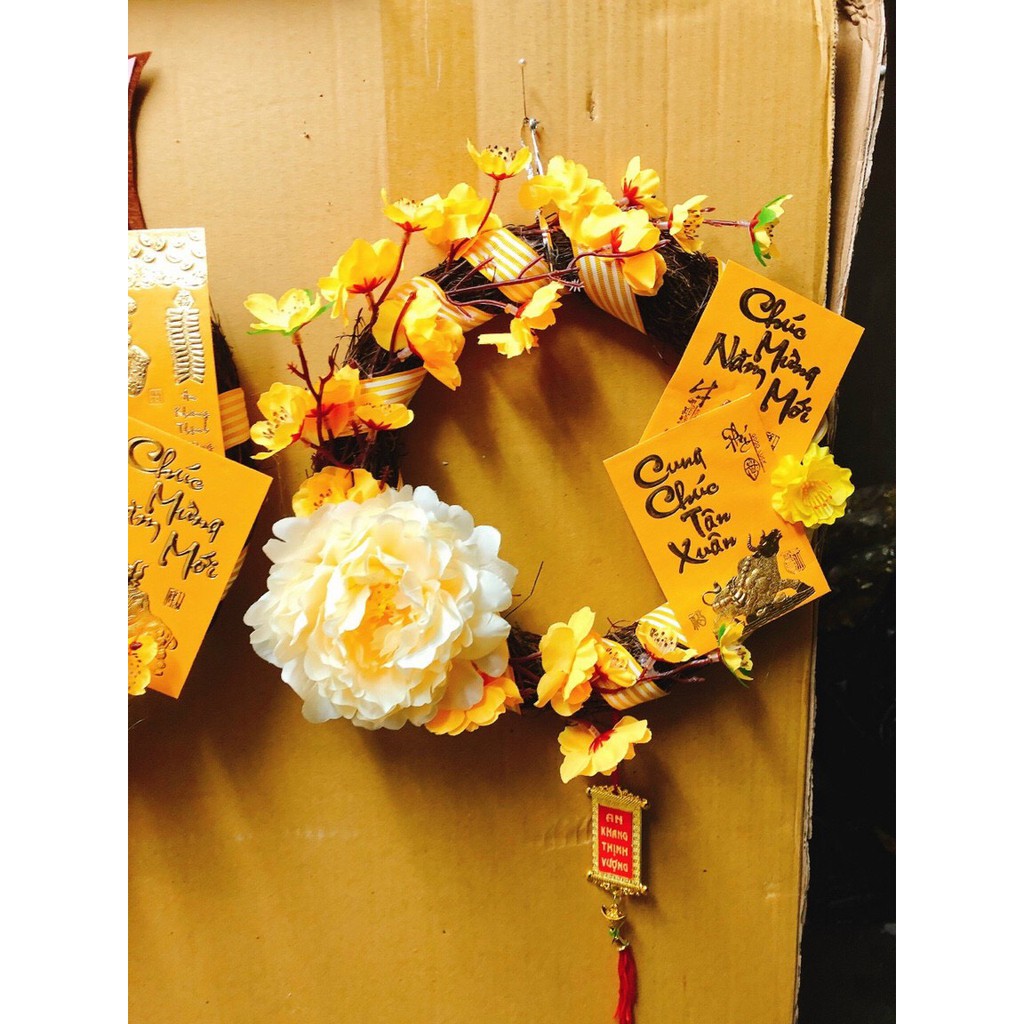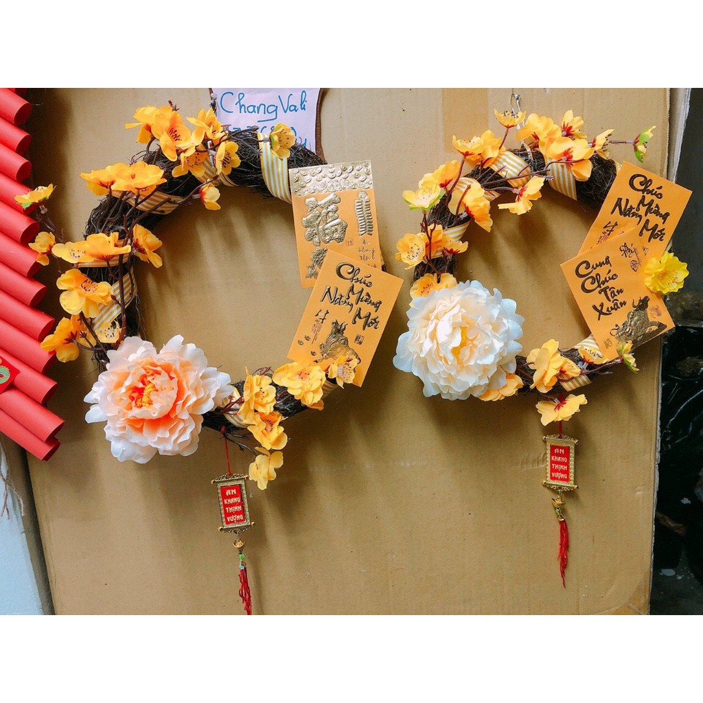 Vòng hoa mai, hoa đào, lì xì trang trí tết 2021