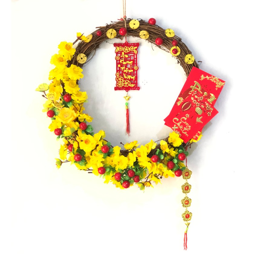 Nhà cửa & Đời sống > Trang trí nhà cửa > Hoa trang trí || Vòng hoa mai hoa đào trang trí tết H05Còn hàng