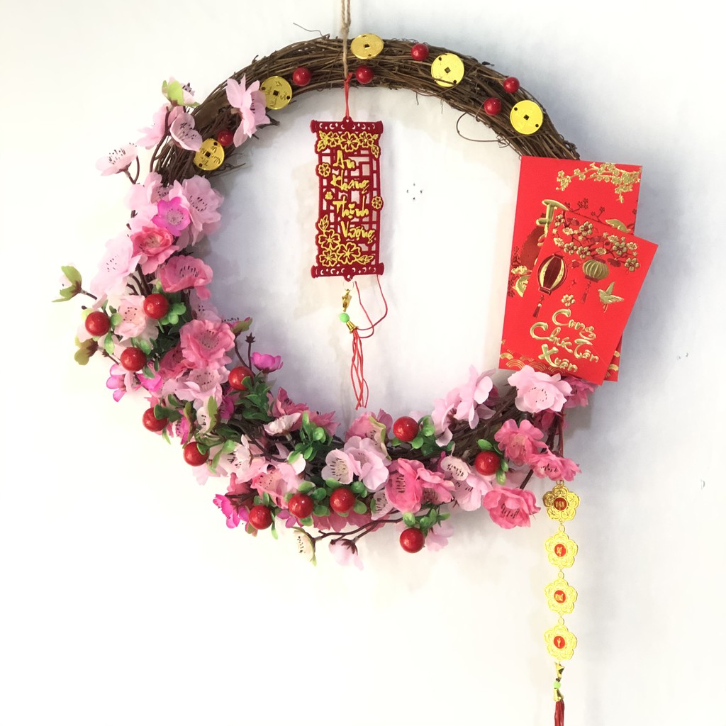 Giới thiệu Vòng hoa mai hoa đào trang trí tết H05