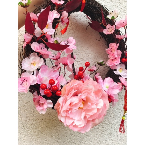 Giới thiệu VÒNG LỚN VÒNG TREO CỬA TẾT NHÂM DẦN 2022 VỚI ĐÀO HỒNG ĐIỂM HOA MẪU ĐƠN BAO LÌ XÌ VÀ ĐÔNG ĐÀO PHONG CÁCH TRUNG HOA