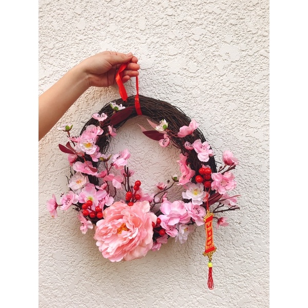 VÒNG LỚN VÒNG TREO CỬA TẾT NHÂM DẦN 2022 VỚI ĐÀO HỒNG ĐIỂM HOA MẪU ĐƠN BAO LÌ XÌ VÀ ĐÔNG ĐÀO PHONG CÁCH TRUNG HOA
