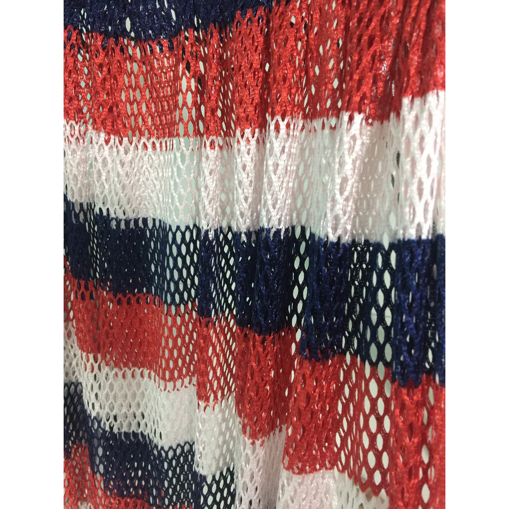 * Mô tả chi tiết: Lỗ nhỏ, sợi lưới dày, đã căng kim, ít giãn (không mềm như loại mềm dày 99), In họa tiết, in sọc đỏ ngang