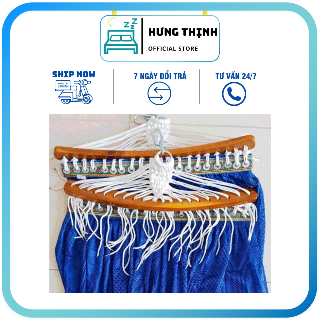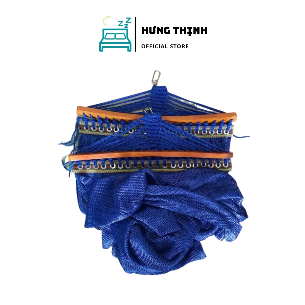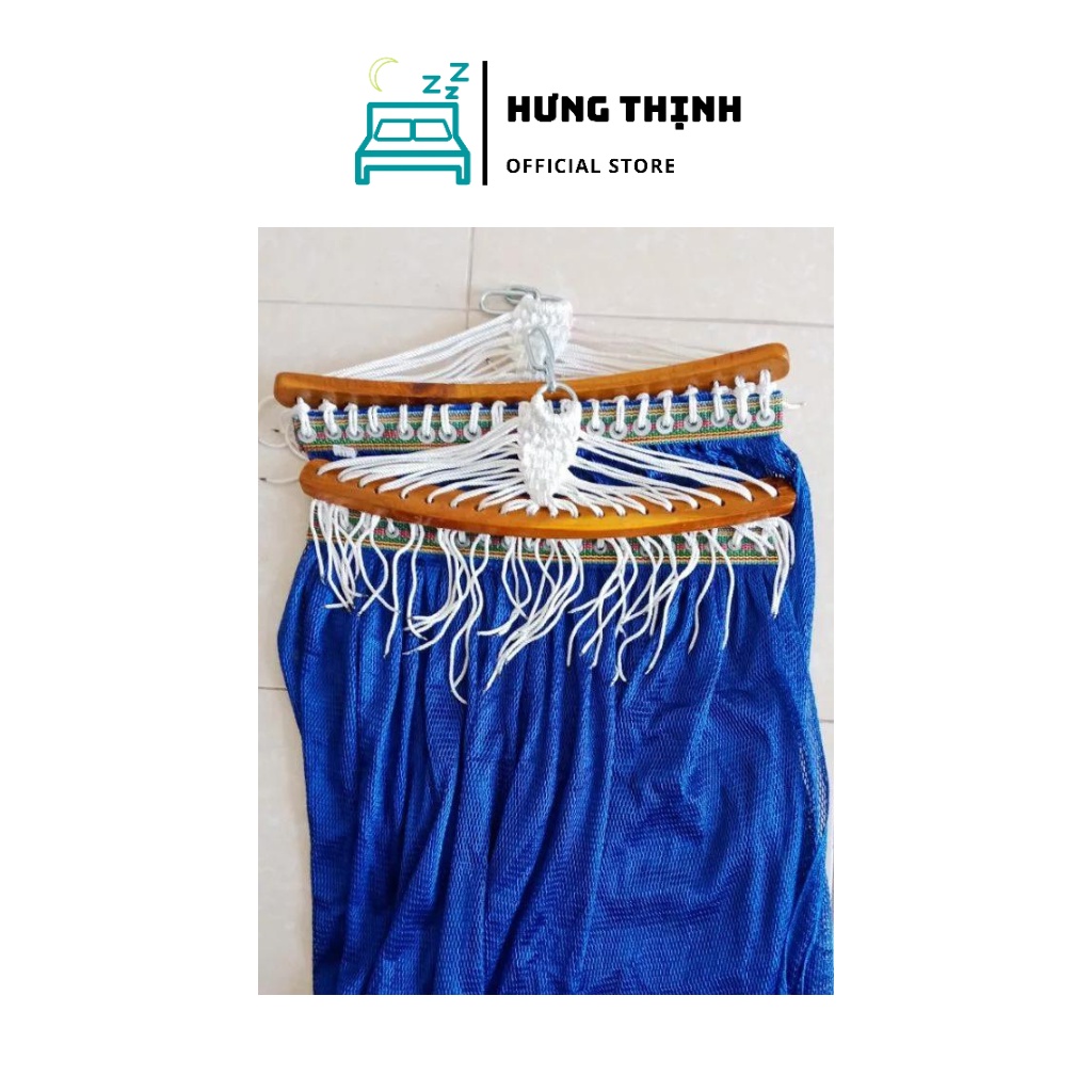 _Võng lưới cán gỗ xếp 2 lớp cao cấp 20 lỗ giá rẻ cho người lớn trẻ em có cán 2 đầu giúp võng xòe rộng, không bị lật