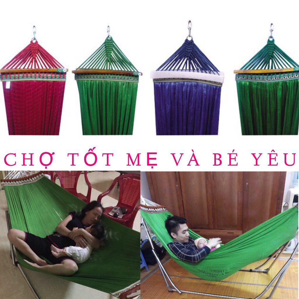 => Võng nẹp cán gỗ, giúp võng căng rộng nằm thoải mái