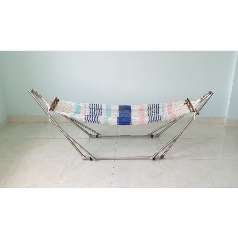 Lưu ý, chiều dài bao gồm luôn cả khoen xích. Nếu bạn đo khung võng thì chỉ đo từ cái móc treo này qua móc treo kia thôi. Võng lưới cao cấp mới treo nó sẽ hơi căng chứ không được chùng xuống như võng đã sử dụng lâu. Võng mới chưa giãn nên bạn thấy nó ngắn hơn so với võng đang dùng. Nhưng nếu bạn nằm 2-3 ngày nó sẽ giãn ra thêm 5-10cm chùng xuống là vừa nha. Đặc biệt võng lưới loại cao cấp thiết kế với độ cong ít , và sẽ cao hơn võng bình thường giúp hạn chế bị cong lưng khi nằm, và dễ dàng đứng lên ngồi xuống, cũng giống như bạn ngồi trên cái ghế cao khi đứng lên sẽ dễ dàng hơn ngồi cái ghế thấp.