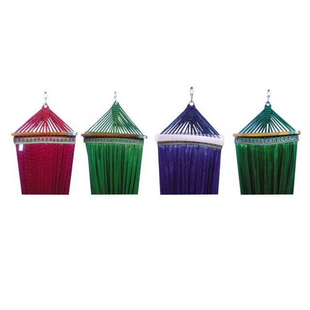 -Võng lưới 100% polyester, mềm mịn, thoáng mát. Cán võng bằng gỗ tự nhiên 100%, sơn phủ chống mối mệt.