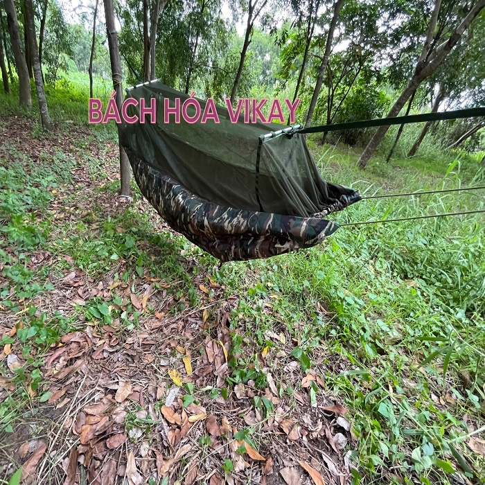 Giới thiệu Võng mùng LÍNH 2 lớp xếp gọn (1.5*2.5m) Họa tiết rằn ri Và dây dù 16 mét