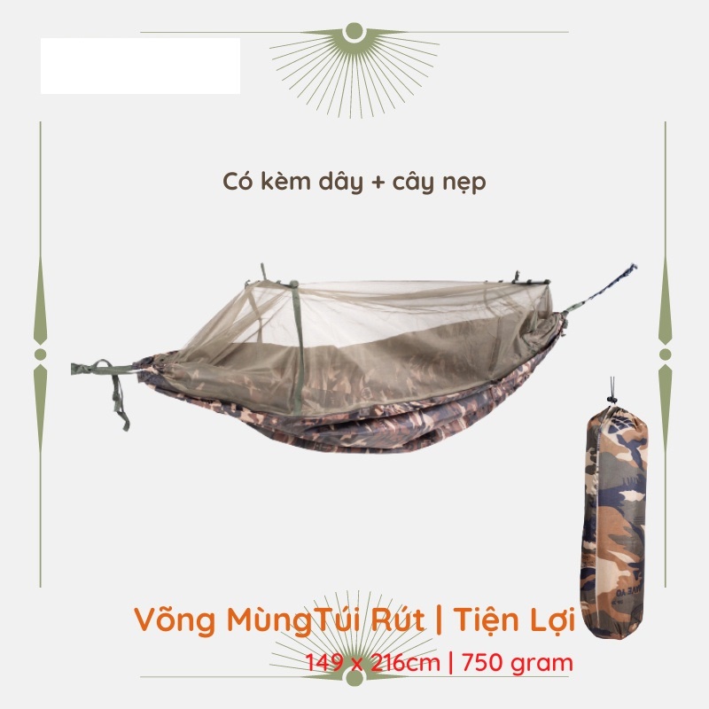 Thể Thao & Dã Ngoại > Dụng Cụ Thể Thao & Dã Ngoại > Cắm Trại & Dã ngoại > Võng || Võng MùngTúi Rút | Tiện Lợi | Vải Trơn | Có Kèm Dây + Cây NẹpCòn hàng