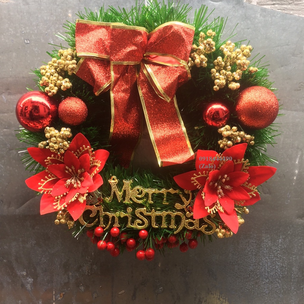 Vòng hoa Giáng Sinh -Vòng hoa Noel -Vòng hoa mùa vọng - Vòng nguyệt quế giáng sinh trang trí nhà cửa đường kính 30cmKích thước: đường kính 30cm (chỉ tính khung, không tính kích thước các chi tiết lan ra ngoài vòng)