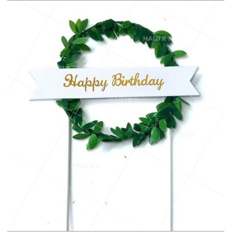 Nhà cửa & Đời sống > Dụng cụ nhà bếp > Dụng cụ nướng & trang trí bánh || Vòng nguyệt quế Happy Birthday trang trí bánh sinh nhật, topper cakeCòn hàng