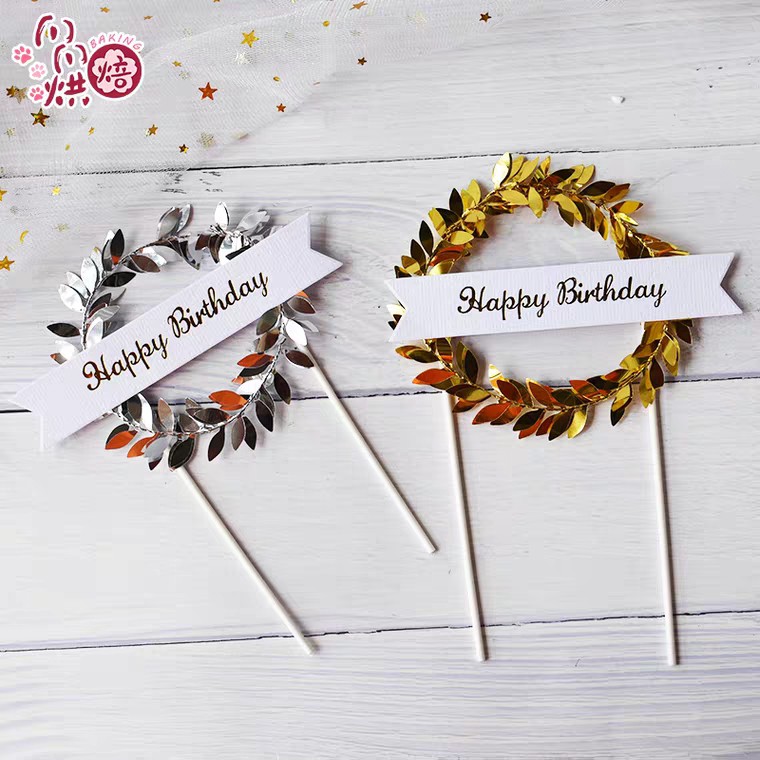 Nhà cửa & Đời sống > Dụng cụ nhà bếp > Dụng cụ nướng & trang trí bánh || Vòng nguyệt quế Happy birthday trang trí bánh kem, bánh sinh nhậtCòn hàng
