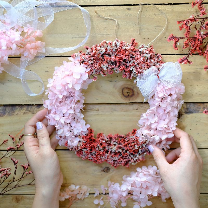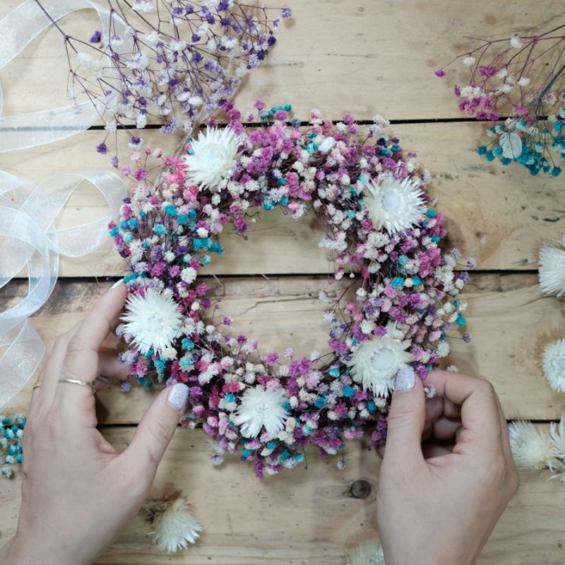 Vòng nguyệt quế hoa khô các bạn có thể tự oder với nhiều màu sắc, kích thước khác nhau. Có thể treo vòng nguyệt quế trên tường, trước cửa phòng tạo không gian ấm cúng, thơ mộng, giúp cho không gian bớt đơn điệu, nhàm chán.