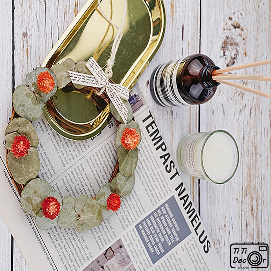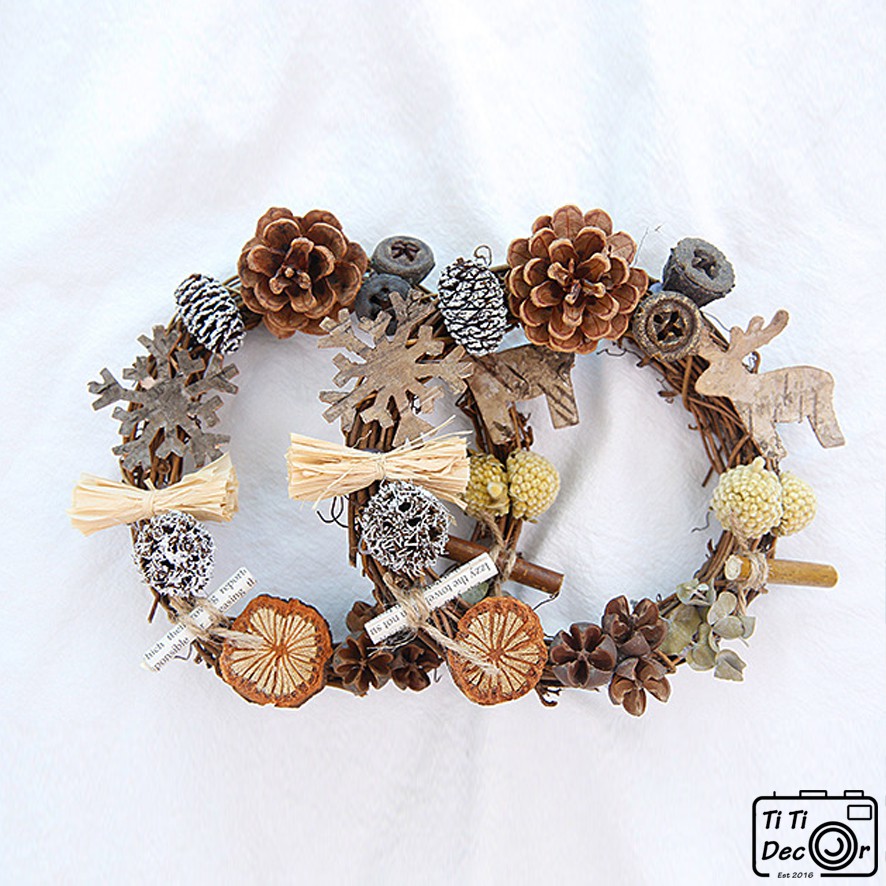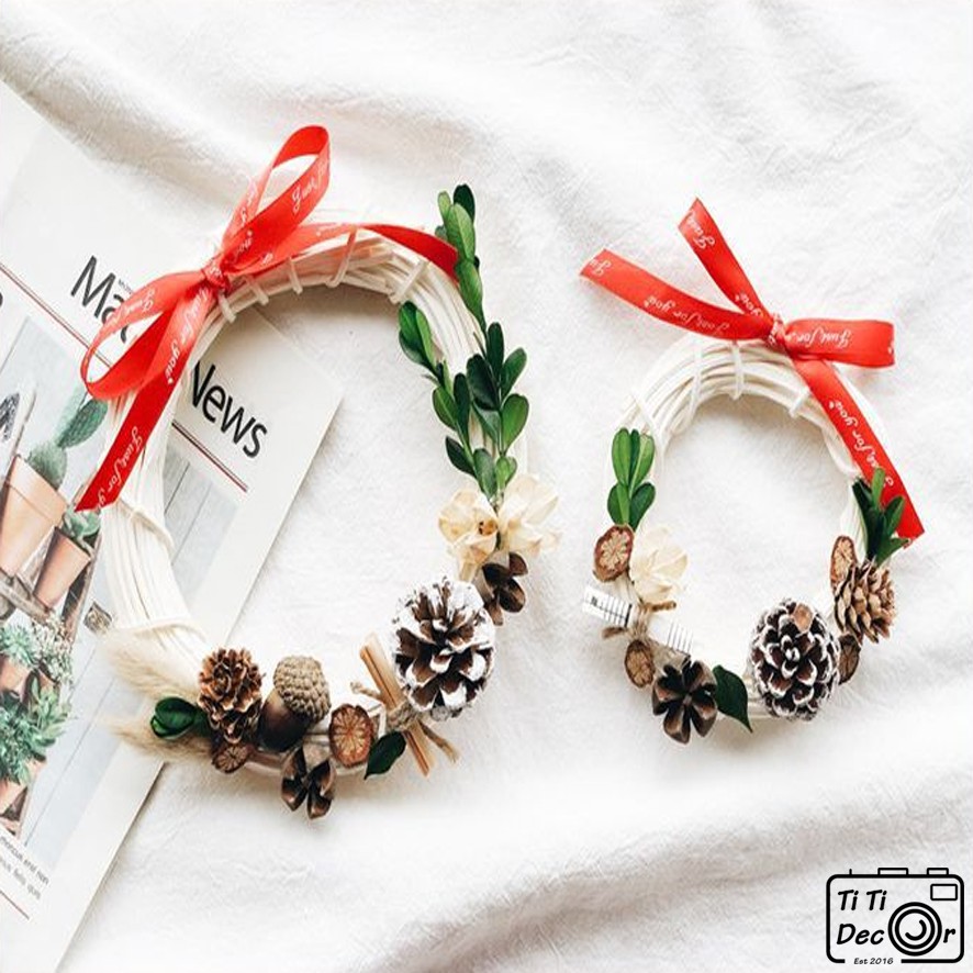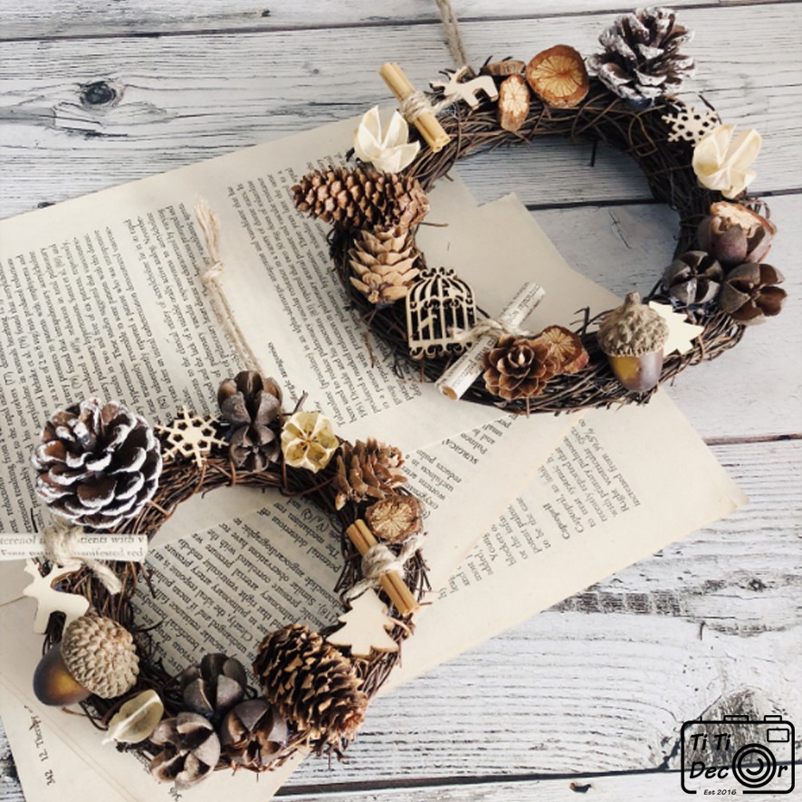 ▶️ Chất liệu: Cành khô, quả thông khô, hat sồi khô, ruy băng