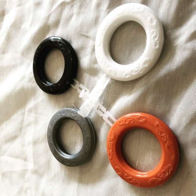 Sản phẩm vòng ore may rèm cửa,gồm 4 màu cơ bản trắng,đỏ,ghi và đen.Quy cách đóng gói bịch 100 cái.Đóng chắc chắn đảm bảo không bị bung.Hỗ trợ cho a chị e tập may rèm cửa ở nhà.Giá ZEC
