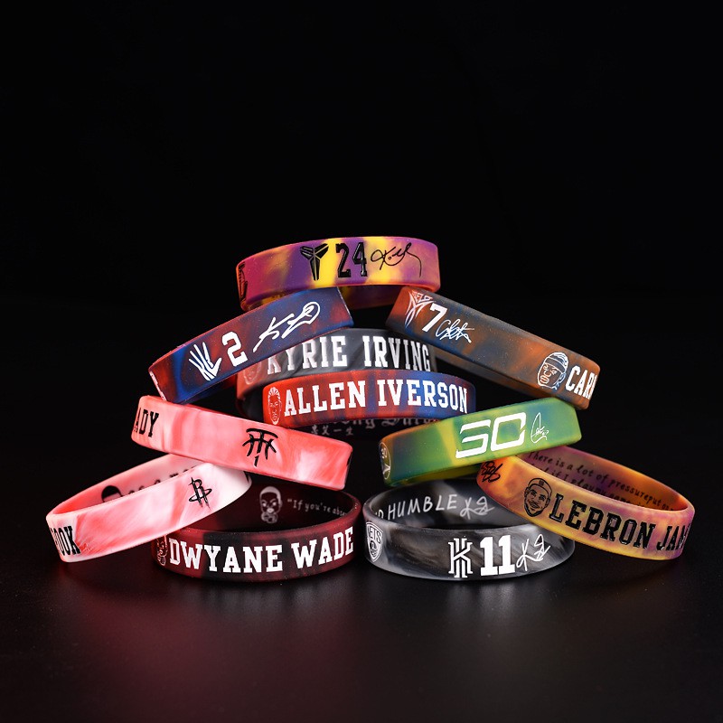 Vòng Tay Bóng Rổ Cao Su NBA 2.0 Khắc Logo Kobe Curry Jordan Harden Kyrie King James Durant Giannis Rose Iverson Leonard