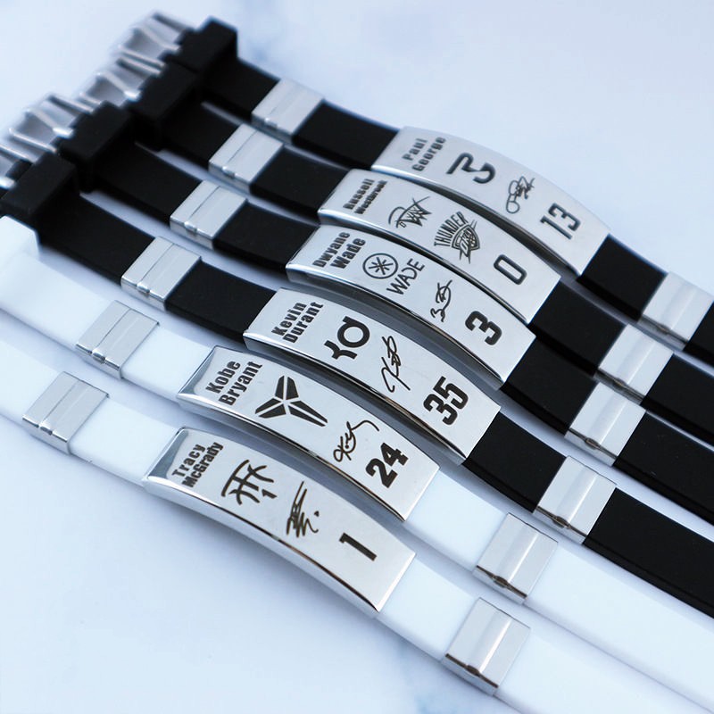 Thể Thao & Dã Ngoại > Phụ Kiện Thể Thao & Dã Ngoại > Vòng Tay Thể Thao || Vòng Tay Bóng Rổ NBA 6.1 Dây Cao Su Mặt Titan Khác Logo Kobe Curry James Harden Kyrie Wade Duncan Durant RoseCòn hàng