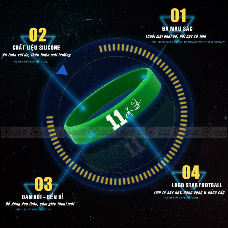 Giới thiệu Vòng Tay Cao Su Bóng Đá 1.0 Cao Cấp In Logo Các Ngôi Sao Bóng Đá Ronaldo Cr7, Messi, Neymar