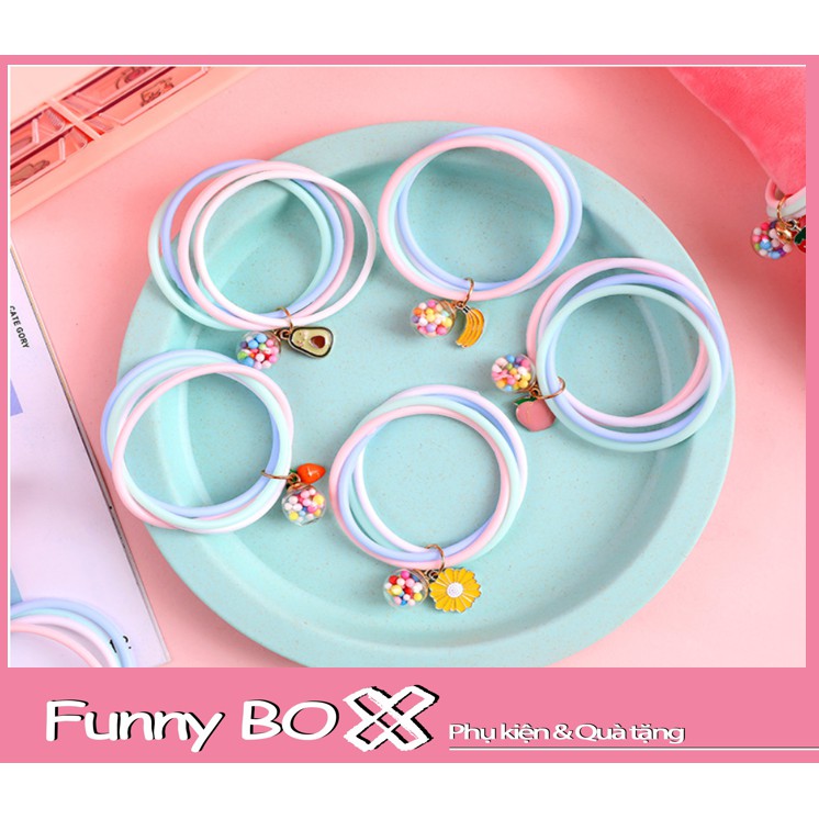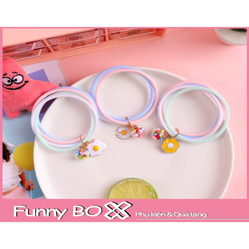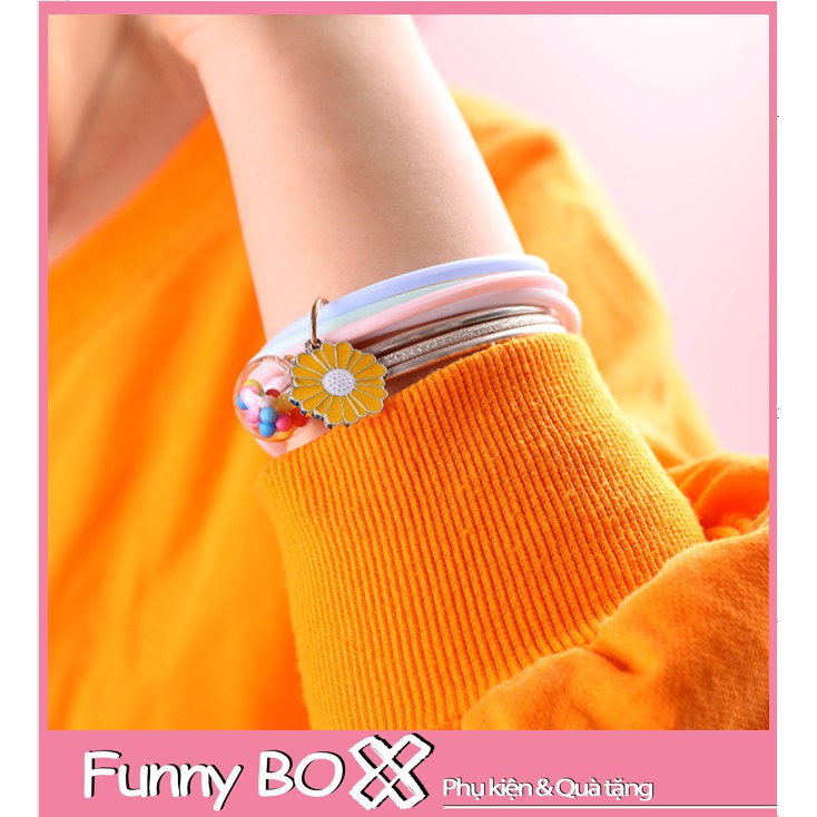 Thiết kế: 4 vòng silicon tone màu pastel phối phụ kiện nhỏ xinh bằng thép chống gỉ cá tính, năng động phù hợp cho cả trẻ em và người lớn