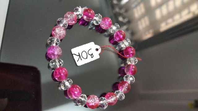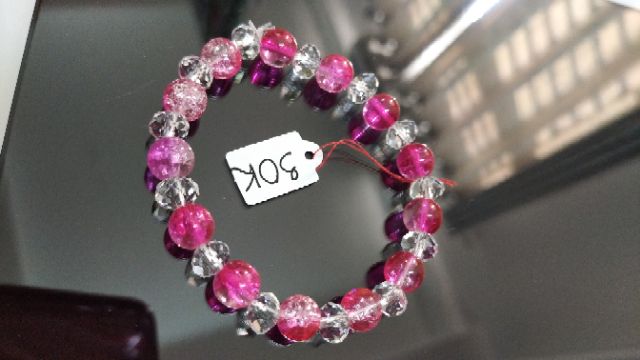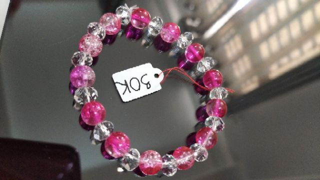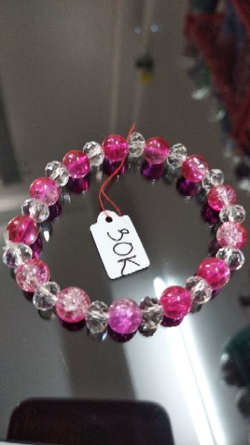 Vòng tay đá tuyết hồng 8li mix pha lê chiếu lấp lánh.Vòng tay đá tuyết hồng 8li mix pha lê chiếu lấp lánh.