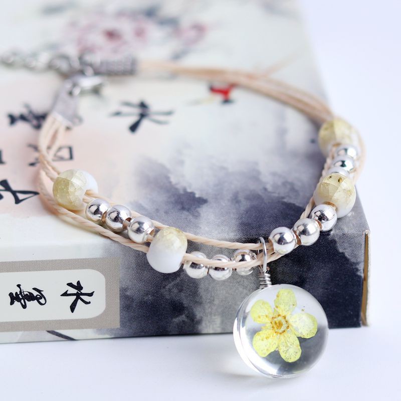Vòng tay nữ hoa khô, gốm made hand, chi tiết sắc sảo. Thích hợp làm quà tặng.