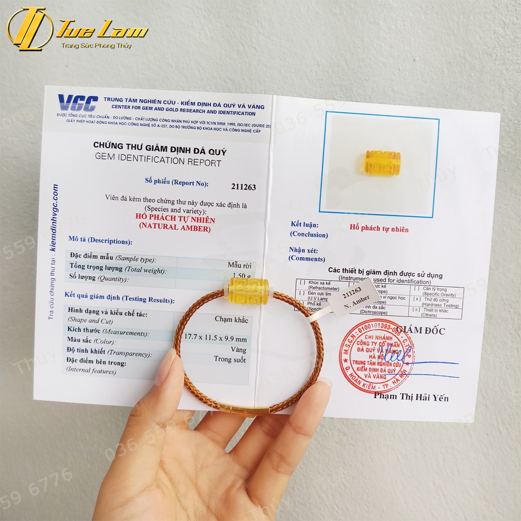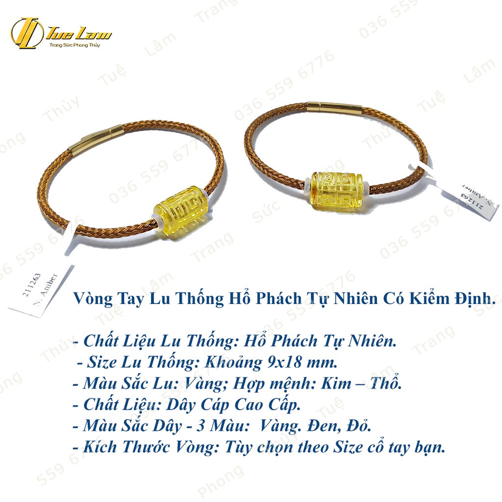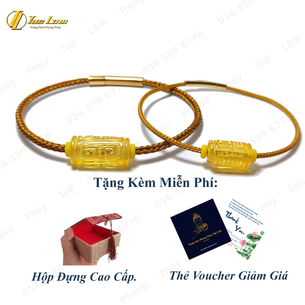 Giới thiệu Vòng Tay Phong Thủy Đá Lu Thống Amper Màu Vàng Khắc Họa Tiết - Dây Cáp - Khóa Bấm - Tuệ Lâm