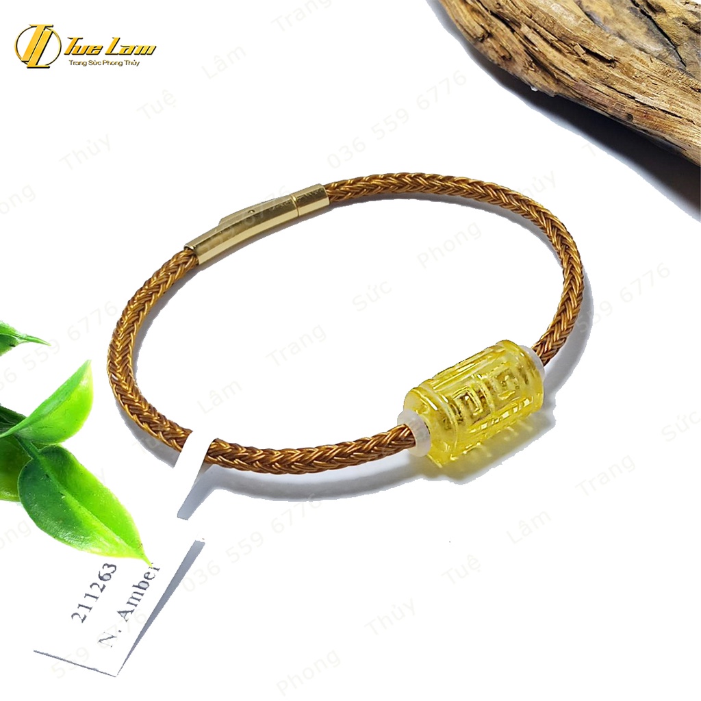 Vòng Tay Phong Thủy Đá Lu Thống Amper Màu Vàng Khắc Họa Tiết - Dây Cáp - Khóa Bấm - Tuệ Lâm
