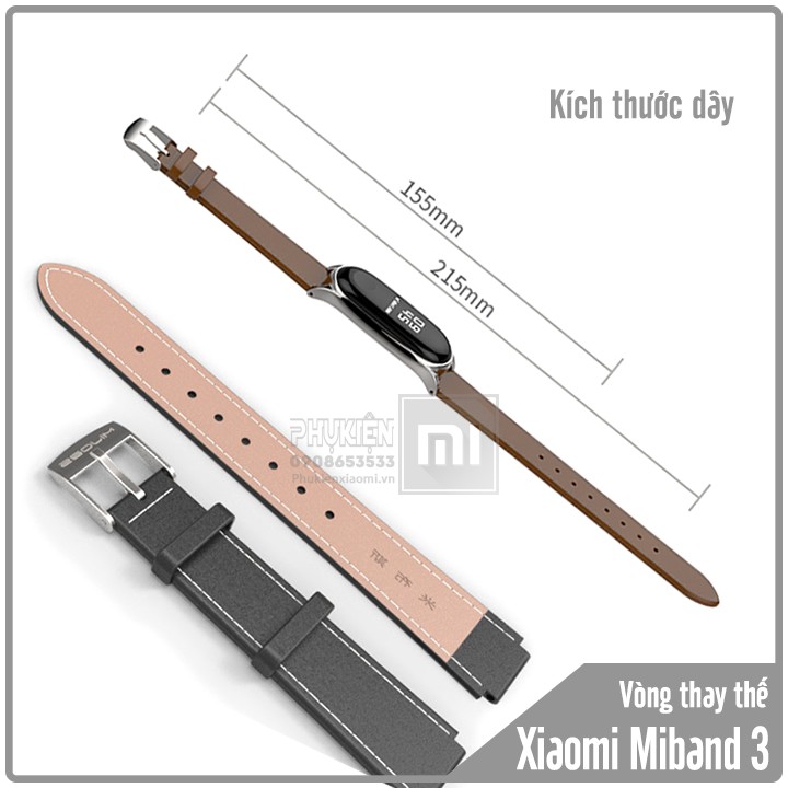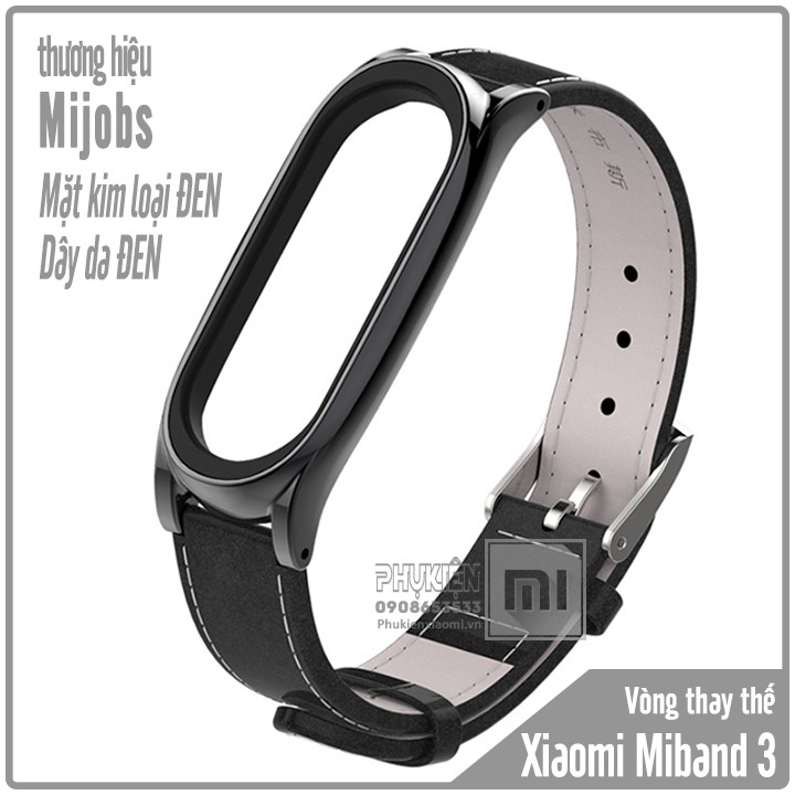 Vòng thay thế Xiaomi Miband 3 / 4 Mijobs dây da mặt kim loại