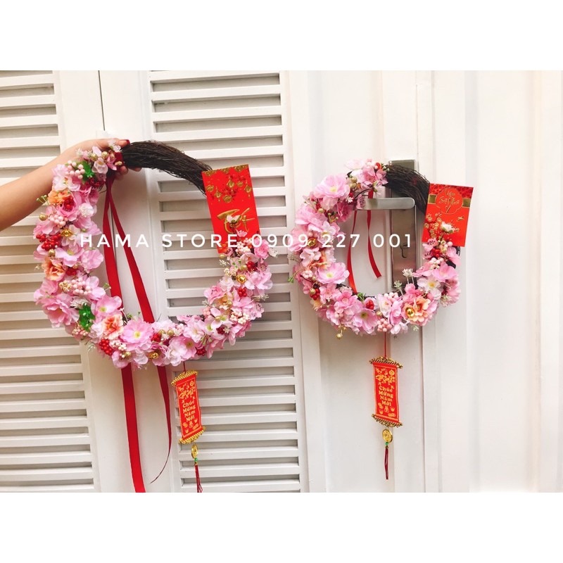 Nhà cửa & Đời sống > Trang trí nhà cửa > Rèm cửa, màn che || VÒNG TREO CỬA ĐÀO HỒNG TRANG TRÍ TẾT NGUYÊN ĐÁN NHÂM DẦN 2022 VỚI BAO LÌ XÌ VÀ LIỄNG TREO CÂU ĐỐI ĐỎCòn hàng