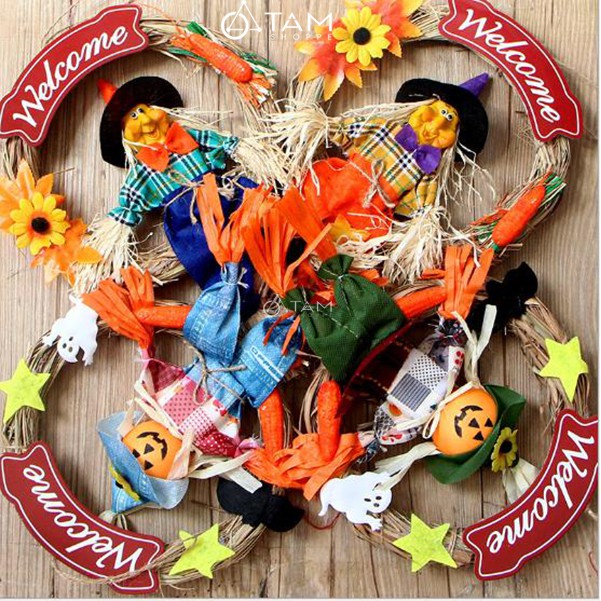 Giới thiệu Vòng treo cửa Halloween Welcome người rơm HLW-BTC-03